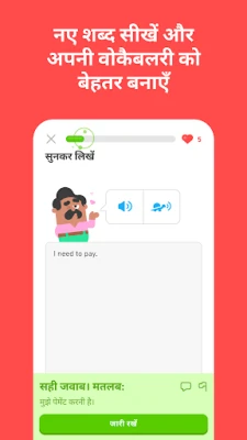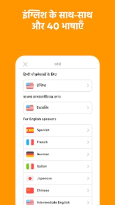 क्या आप दुनिया की नई भाषाएँ सीखना चाहते हैं? डुओलिंगो, भाषा विशेषज्ञों द्वारा निर्मित, दुनिया भर के लाखों शिक्षार्थियों का पसंदीदा मंच है जो आपको वास्तविक जीवन की बातचीत के लिए तैयार करता है। चाहे आप यात्रा के लिए, अपनी शिक्षा या करियर को आगे बढ़ाने के लिए, दोस्तों और परिवार से जुड़ने के लिए, या बस अपने दिमाग को तेज़ रखने के लिए सीख रहे हों, डुओलिंगो के साथ सीखने का हर पल मज़ेदार और सार्थक होगा। यहाँ आपको स्पैनिश, फ़्रेंच, जैपनीज़, कोरियन, जर्मन, इंग्लिश और कई अन्य भाषाओं में दक्षता हासिल करने का अवसर मिलता है।