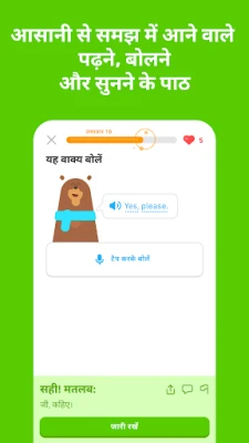 डुओलिंगो सिर्फ़ मनोरंजक ही नहीं, बल्कि बेहद प्रभावी भी है। यह आपको खेल-खेल में भाषा सीखने का अनूठा अनुभव प्रदान करता है, जहाँ हर पाठ एक मज़ेदार चुनौती की तरह लगता है। आकर्षक किरदारों के साथ जुड़कर, आप पढ़ने, लिखने, बोलने और सुनने के सभी महत्वपूर्ण पहलुओं का अभ्यास करते हैं। हमारी वैज्ञानिक रूप से डिज़ाइन की गई शिक्षण प्रणाली यह सुनिश्चित करती है कि आप जो कुछ भी सीखते हैं, वह आपकी याददाश्त में लंबे समय तक बना रहे, जिससे आपकी भाषा सीखने की यात्रा और भी सफल होती है।