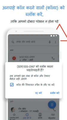 फ़ोन ऐप्लिकेशन आपकी संचार यात्रा को सरल और सुरक्षित बनाने के लिए डिज़ाइन किया गया है। क्या आप अवांछित स्पैम कॉल, टेलीमार्केटर्स और धोखाधड़ी करने वालों से परेशान हैं? यह ऐप आपको संदिग्ध कॉलर्स के बारे में वास्तविक समय में चेतावनी देता है, जिससे आप उन्हें जवाब देने से पहले ही पहचान सकें। आप आसानी से किसी भी परेशान करने वाले नंबर को ब्लॉक कर सकते हैं, यह सुनिश्चित करते हुए कि वे आपको दोबारा संपर्क न कर पाएं। Google की व्यापक कॉलर आईडी तकनीक की मदद से, आपको यह जानने में आसानी होगी कि आपको कौन कॉल कर रहा है – चाहे वह कोई व्यवसाय हो या कोई अपरिचित नंबर। अब आप विश्वास के साथ कॉल का जवाब दे सकते हैं या उसे अनदेखा कर सकते हैं।