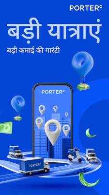 Porter, भारत के लॉजिस्टिक्स परिदृश्य में एक अग्रणी नाम, देशभर में लाखों व्यक्तियों को सशक्त बना रहा है। यदि आप अपने व्यावसायिक वाहन से आय अर्जित करने का एक विश्वसनीय और लचीला तरीका खोज रहे हैं, तो Porter आपके लिए सुनहरा अवसर प्रस्तुत करता है। हमारा विशाल नेटवर्क 500,000 से अधिक पंजीकृत ड्राइवर-पार्टनर्स को सशक्त बनाता है, जो हर दिन सफलता की नई कहानियाँ लिखते हैं और अपने समय के अनुसार कमाई शुरू करने का अवसर पाते हैं।