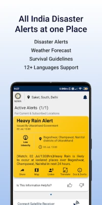 दैनिक जीवन में मौसम की जानकारी भी उतनी ही महत्वपूर्ण है। SACHET आपको भारतीय मौसम विज्ञान विभाग (IMD) द्वारा प्रदान किए गए सटीक और नवीनतम मौसम पूर्वानुमान और रिपोर्ट सीधे आपके डिवाइस पर उपलब्ध कराता है, ताकि आप अपने दिन की बेहतर योजना बना सकें। इसके अलावा, SACHET ऐप में आपदा प्रबंधन के लिए आवश्यक 'क्या करें और क्या न करें' की विस्तृत सूची, महत्वपूर्ण हेल्पलाइन नंबर और प्रभावित क्षेत्रों की जानकारी भी शामिल है। यह विशेष रूप से सैटेलाइट रिसीवर कनेक्टिविटी सुविधा के साथ आता है, जिससे दूरस्थ और कनेक्टिविटी-विहीन क्षेत्रों में भी महत्वपूर्ण अलर्ट प्राप्त किए जा सकें।