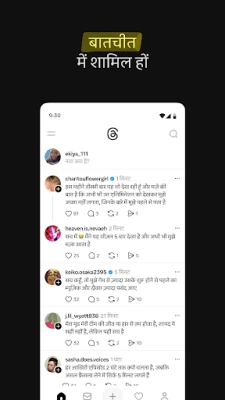 Threads पर, आप अपनी राय व्यक्त करने के लिए एक नई बातचीत शुरू कर सकते हैं—चाहे वह नवीनतम संगीत रिलीज़, फ़िल्म प्रीमियर, खेल, गेम, टीवी शो, फ़ैशन या बिल्कुल नए उत्पाद के बारे में हो। सबसे जीवंत चर्चाओं में शामिल हों, जहाँ आप दूसरों की टिप्पणियों, हास्य और गहरी अंतर्दृष्टि पर प्रतिक्रिया दे सकते हैं। अपनी कम्युनिटी को खोजें और ऐसे लोगों से जुड़ें जिनके लिए वही चीज़ें मायने रखती हैं जिनमें आपकी दिलचस्पी है। टीवी सुझावों से लेकर करियर संबंधी सलाह तक, अपने सवालों के जवाब पाएँ या क्राउड-सोर्स वाली बातचीत, विचारशील नेताओं और उद्योग विशेषज्ञों से कुछ नया सीखें। अपने पसंदीदा प्रोफ़ाइलों से कोई भी पल न छूटने दें; नए रुझानों और लाइव आयोजनों से जुड़े रहने के लिए सूचनाओं और चर्चाओं पर नज़र रखें।