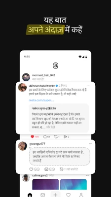 Threads, Meta द्वारा निर्मित एक जीवंत मंच है जहाँ समुदाय एक साथ आकर आज के महत्वपूर्ण विषयों से लेकर कल के उभरते रुझानों तक हर चीज़ पर विचार-विमर्श करते हैं। आपकी जो भी रुचि हो, आप अपने पसंदीदा रचनाकारों और समान विचारधारा वाले व्यक्तियों से सीधे जुड़ सकते हैं—या अपनी स्वयं की विश्वसनीय फ़ॉलोइंग बनाकर दुनिया के साथ अपने विचार, राय और रचनात्मकता साझा कर सकते हैं। Instagram से सहज एकीकरण के साथ, आपका यूज़रनेम और वेरिफ़िकेशन बैज सुरक्षित रहता है, और आप कुछ ही टैप में उन सभी अकाउंट को फ़ॉलो कर सकते हैं जिन्हें आप Instagram पर फ़ॉलो करते हैं, साथ ही नए लोगों से भी जुड़ सकते हैं।